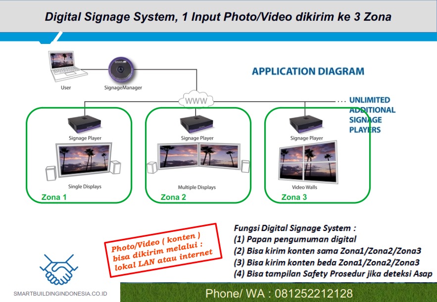 Kami smartbuildingindonesia sanggup memberikan pelayanan pengadaan dan instalasi untuk Digital Signage Surabaya, Digital Signage Malang, Digital Signage Sidoarjo, Digital Signage Banyuwangi, Digital Signage Jember, Digital Signage Probolinggo, Digital Signage Bali, Digital Signage Makasar dan di seluruh wilayah Indonesia lainnya.