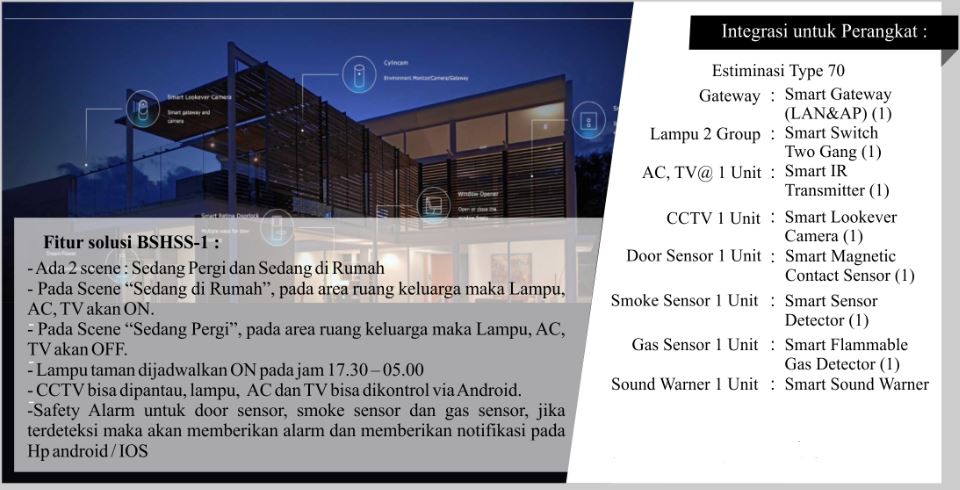 Untuk kondisi lampu taman bisa dengan penjadwalan ON pada 17.30-05.00 dan untuk CCTV pantau, lampu, AC dan TV bisa di kontrol akses melalui Android.